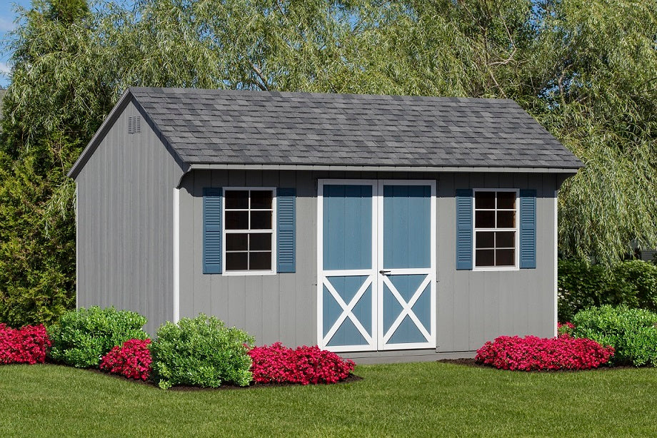 Check out our 10x16 Cottage Shed—it's not your grandma's garden shed! Perfect for practical storage with a side of style, it comes with two 18x27 windows with shutters, two large double doors, and a 3' door to keep your belongings safe and sound. Plus, the ridge vent and three-lite windows add a touch of pizzazz. Boasting all the bells and whistles, it's sure to make your yard the envy of the neighborhood.