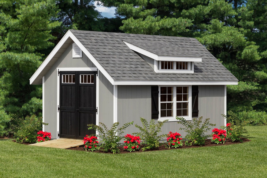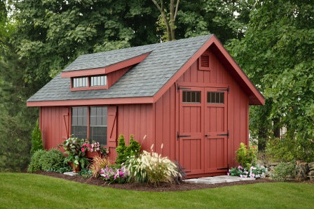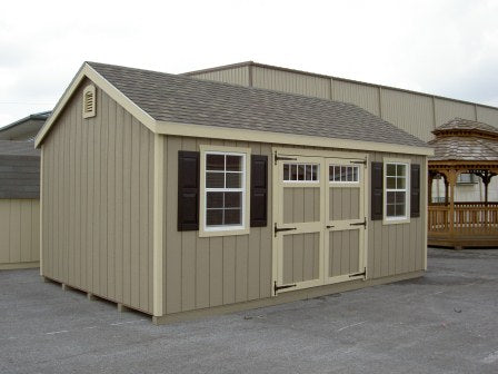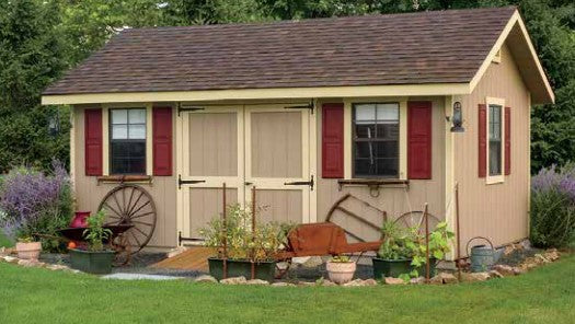 The design of the Victorian style storage shed is sure to be envy of your neighbors with its attention to beautiful details. The A-Frame style is named for the classic 'A' shaped roof and is a versatile hobby bench, equipment storage space, and garden shed. Each Victorian A-Frame Barn is custom built to meet your needs and is available in many sizes, a vinyl or wood exterior, and a variety of color combinations.
