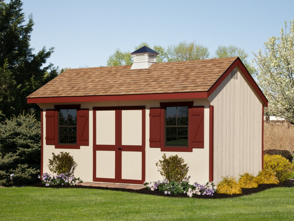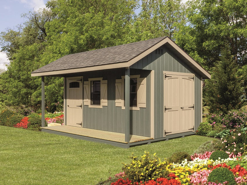 The design of the Victorian style storage shed is sure to be envy of your neighbors with its attention to beautiful details. The Cottage style features an overhang on the front eaves over the doors and windows. Each Victorian Cottage Barn is custom built to meet your needs and is available in many sizes, a vinyl or wood exterior, and a variety of color combinations.