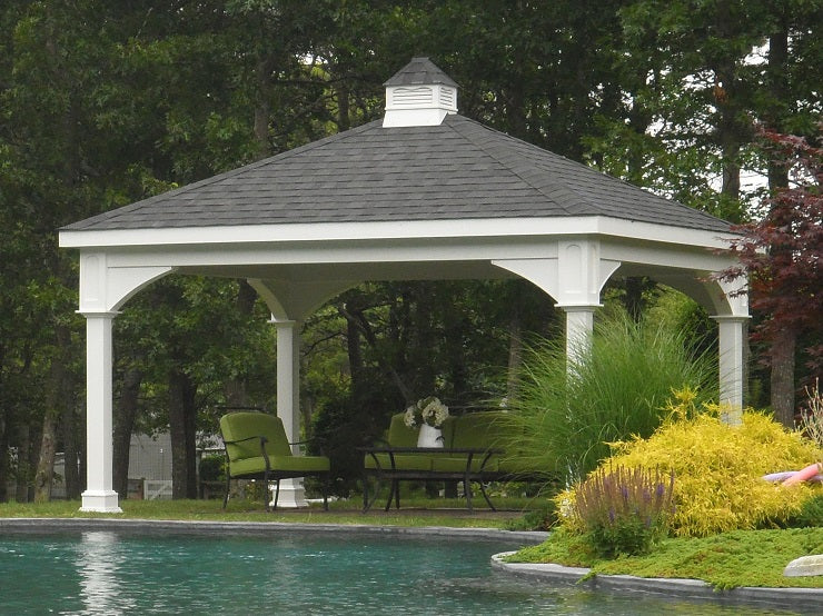 We know that every person has their own style and every area is unique. Because we want to ensure that you love every part of your pavilion, we give you the chance to custom build your own. Choose from our variety of sizes, colors, posts, and roofing options to create your perfect pavilion. Whether you prefer a sturdy wooden material or want something more convenient like vinyl, you are sure to find a style that will match your space and your personality.