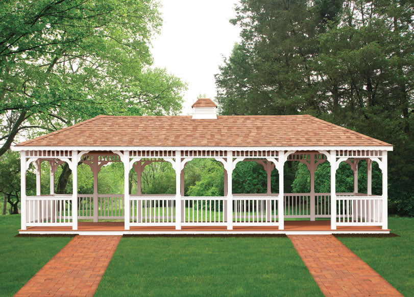 Choose from a variety of sizes and shapes designed to complement your landscape and enhance nearly any backyard setting. From warm wood finishes to crisp white vinyl gazebos, our collection combines beauty and function for the ultimate in outdoor living.